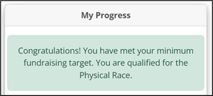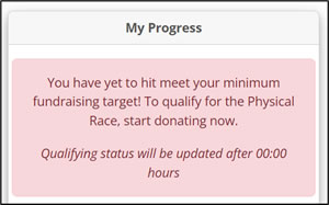 If you have yet to achieve the minimum fundraising amount, you are not eligible to take part in RAC.
